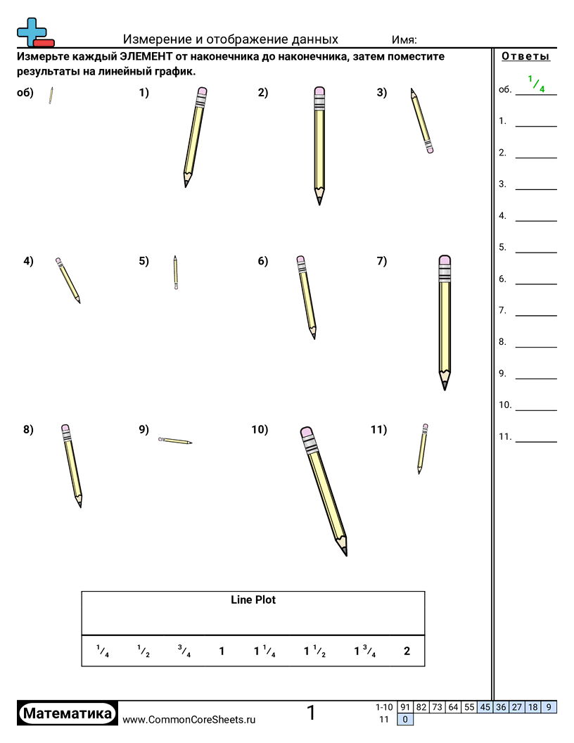 Бесплатные рабочие листы по math для 3 класс (3md4) по теме Измерение и отображение данных. В каждом листе 11 заданий с ответами; подходит для учителей и домашнего обучения. Вы можете скачать PDF, создать карточки или использовать для онлайн-обучения.
