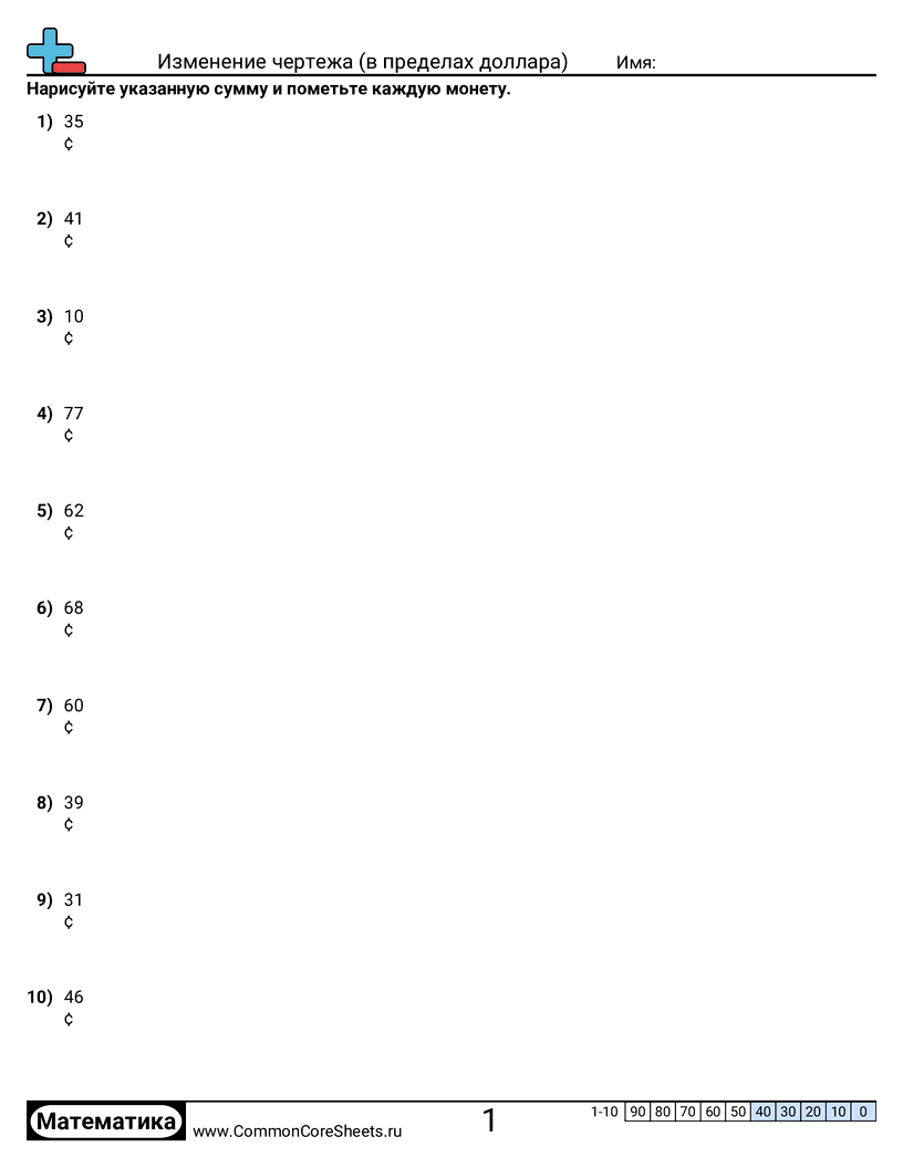 Бесплатные рабочие листы по math по теме Изменение чертежа (в пределах доллара). В каждом листе 10 заданий с ответами; подходит для учителей и домашнего обучения. Вы можете скачать PDF, создать карточки или использовать для онлайн-обучения.