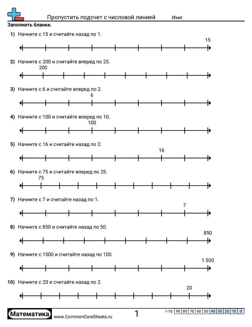 Бесплатные рабочие листы по math по теме Пропустить подсчет с числовой линией. В каждом листе 10 заданий с ответами; подходит для учителей и домашнего обучения. Вы можете скачать PDF, создать карточки или использовать для онлайн-обучения.