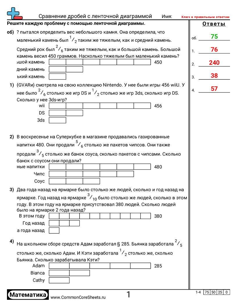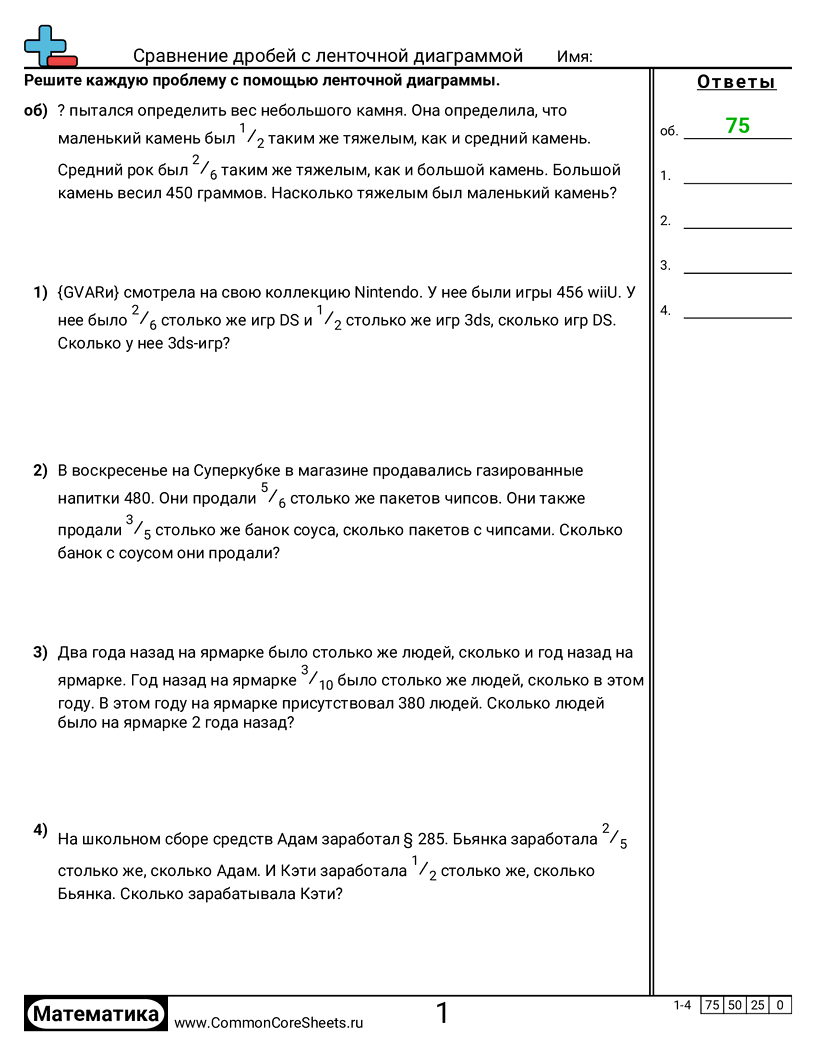 Бесплатные рабочие листы по math по теме Сравнение дробей с ленточной диаграммой. В каждом листе 4 заданий с ответами; подходит для учителей и домашнего обучения. Вы можете скачать PDF, создать карточки или использовать для онлайн-обучения.