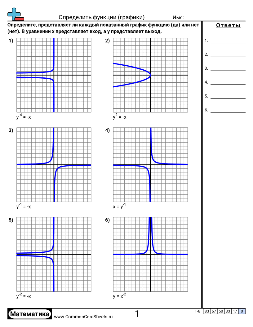 Бесплатные рабочие листы по math для 8 класс (8f1) по теме Определить функции (графики). В каждом листе 6 заданий с ответами; подходит для учителей и домашнего обучения. Вы можете скачать PDF, создать карточки или использовать для онлайн-обучения.