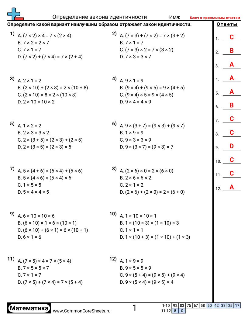 Бесплатные рабочие листы по math для 3 класс (3oa5) по теме Определение закона идентичности. В каждом листе 12 заданий с ответами; подходит для учителей и домашнего обучения. Вы можете скачать PDF, создать карточки или использовать для онлайн-обучения.