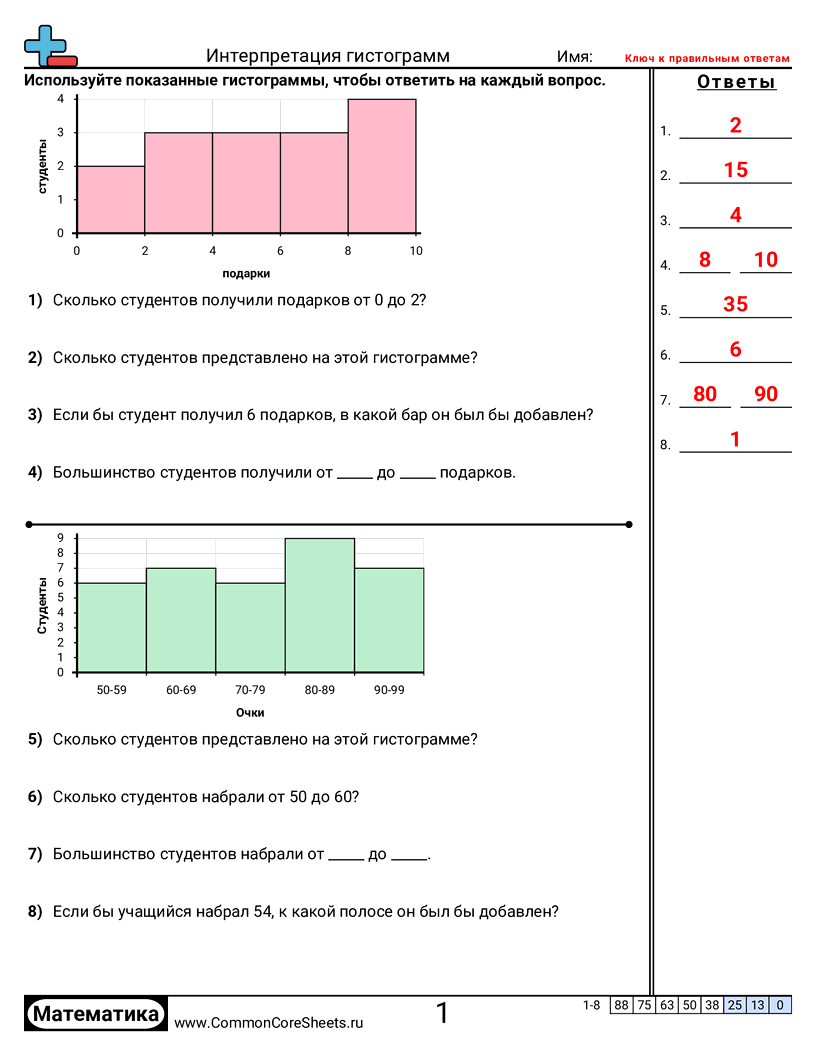 Бесплатные рабочие листы по math по теме Интерпретация гистограмм. В каждом листе 8 заданий с ответами; подходит для учителей и домашнего обучения. Вы можете скачать PDF, создать карточки или использовать для онлайн-обучения.