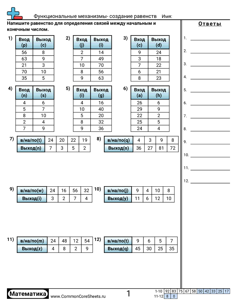 Бесплатные рабочие листы по math для 5 класс (5oa3) по теме Функциональные механизмы- создание равенств. В каждом листе 12 заданий с ответами; подходит для учителей и домашнего обучения. Вы можете скачать PDF, создать карточки или использовать для онлайн-обучения.