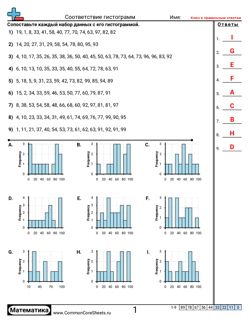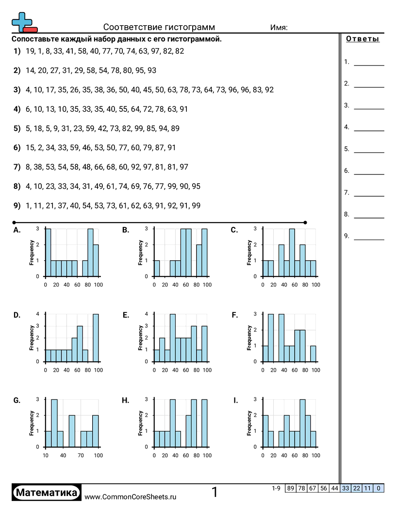 Бесплатные рабочие листы по math по теме Соответствие гистограмм. В каждом листе 9 заданий с ответами; подходит для учителей и домашнего обучения. Вы можете скачать PDF, создать карточки или использовать для онлайн-обучения.