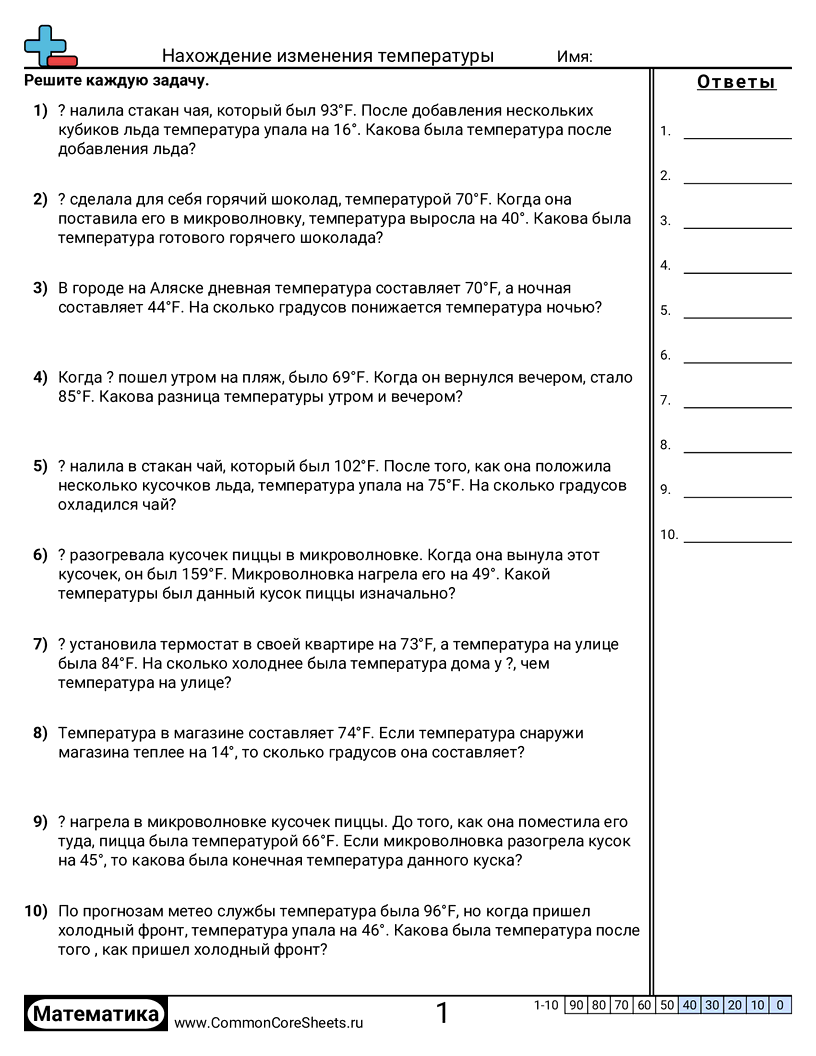 Бесплатные рабочие листы по math по теме Нахождение изменения температуры. В каждом листе 10 заданий с ответами; подходит для учителей и домашнего обучения. Вы можете скачать PDF, создать карточки или использовать для онлайн-обучения.