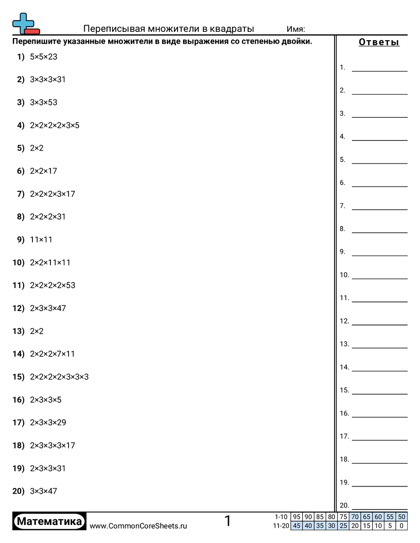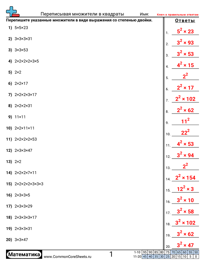 Бесплатные рабочие листы по math для 8 класс (8ns2) по теме Переписывая множители в квадраты. В каждом листе 20 заданий с ответами; подходит для учителей и домашнего обучения. Вы можете скачать PDF, создать карточки или использовать для онлайн-обучения.