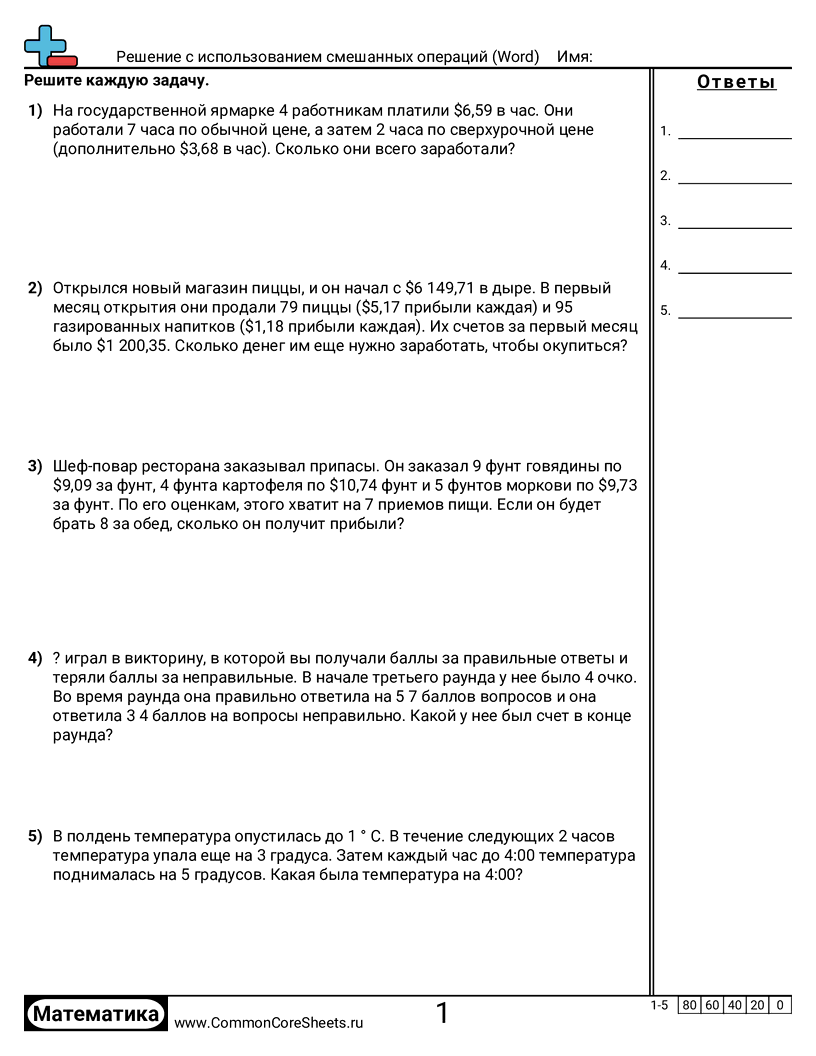 Бесплатные рабочие листы по math для 7 класс (7ns3) по теме Решение с использованием смешанных операций (Word). В каждом листе 5 заданий с ответами; подходит для учителей и домашнего обучения. Вы можете скачать PDF, создать карточки или использовать для онлайн-обучения.